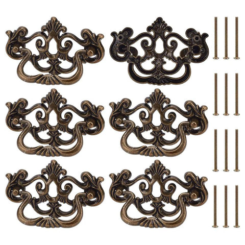 These six antique cabinet pulls add a vintage vibe to dresser upgrades and furniture refreshes. Made from durable alloy with an antique bronze finish, they fit drawers, cupboards, nightstands, and chests, offering classic style and improved grip for daily use.