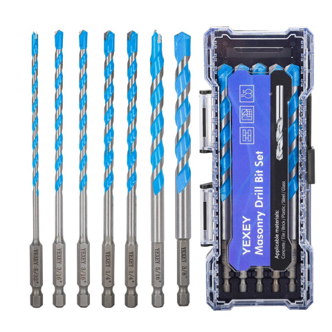 7 Piece Masonry Drill Bit Set With Tungsten Carbide Tips And Hex Shank From Five Thirty Second Inch To Three Eighth Inch For Tile Brick Marble Concrete Wood Plastic Glass Best For Tough Surfaces YEXEY