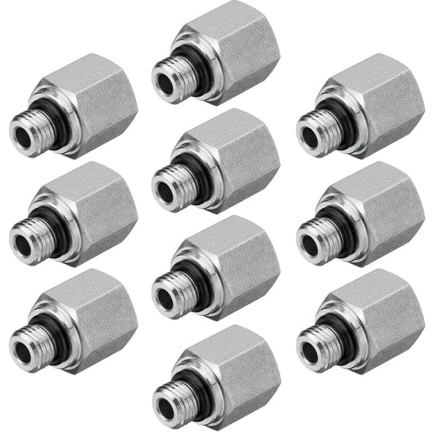 Heavy Duty Hydraulic Adapter Fittings Set Ten Pack Built Tough For High Pressure SAE ORB To One Quarter Inch NPTF Female Straight Tube Connectors With Protection Cover Premium Carbon Steel Zinc Plated For Corrosion Resistance Compatible With Parker 0502