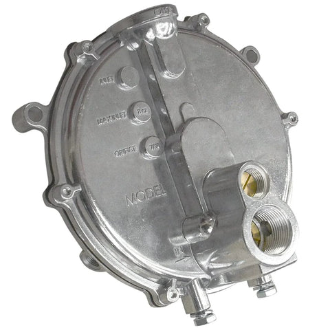 This low pressure regulator feeds propane or natural gas to small engines like Briggs & Stratton powered welders, Craftsman generators, and standby power units. It handles LP and NG vapor fuels with stable pressure for reliable operation.