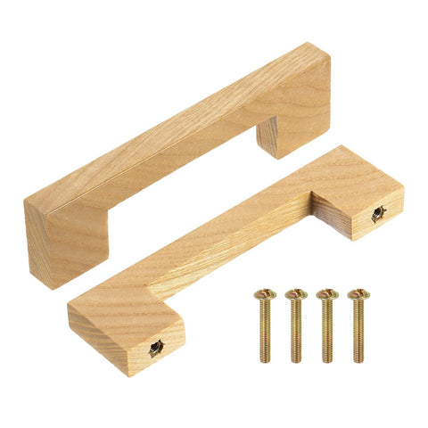 4英寸孔距方形木质抽屉拉手2件套,附螺丝,灰木橱柜把手,适用于厨房、梳妆台、衣柜、橱柜,耐用实木拉手,结构坚固,表面光滑,适合乡村现代风格家居长期使用