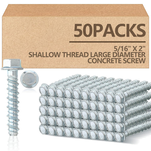 50个装半英寸×四英寸混凝土螺钉 重型镀锌锚栓 适用于砌体、砖块、砌块、甲板框架 六角驱动 加强型性能 快速简便 混凝土中稳固紧固