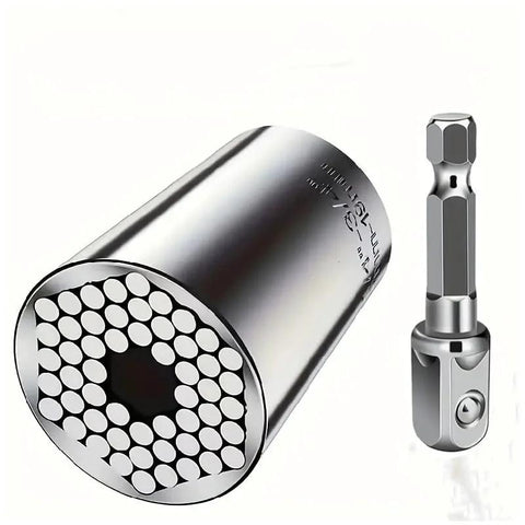 这款通用套筒扳手套装是一款多功能工具,能自动调节以夹持7至19毫米的六角、方形和螺母头。非常适合DIY爱好者、维修工和专业人员,用于家具组装、汽车维修和小型设备修理。