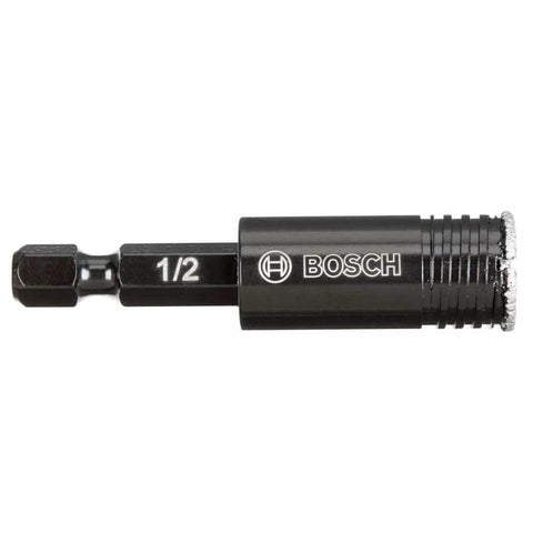 用于瓷砖和花岗岩的金刚石开孔锯,真空钎焊金刚石砂粒,1/2英寸柄,1英寸切割深度,快速启动,分段齿设计切割碎屑和散热,快速更换,博世品牌
