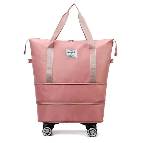 带拉杆套和轮子的可扩展旅行手提包,防水牛津布行李袋,双层扩展从14英寸到22英寸,轻便耐用粉色手提袋,配有可拆卸轮子和平稳滚动功能