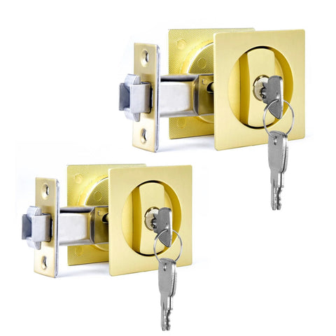 两件装带钥匙口袋门锁,适用于滑动谷仓门,嵌入式双面锁舌,带平齐把手,通用左右手设计,背距2又3/8英寸,内嵌式五金,适用于室内门